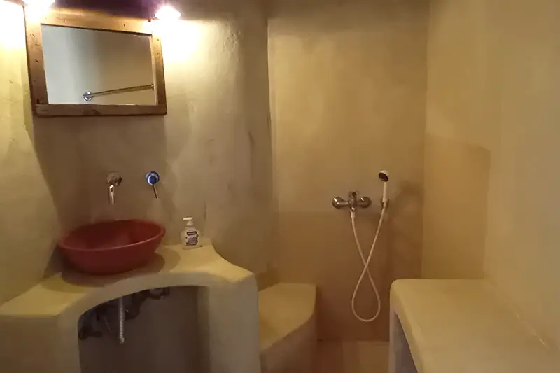 Το σπίτι είναι εξοπλισμένο με κουζίνα πλήρους μεγέθους με ηλεκτρικό βραστήρα και φούρνο μικροκυμάτων. Ένα μπάνιο βρίσκεται επίσης στο ισόγειο και είναι εξοπλισμένο με ντους και πλυντήριο ρούχων για να κάνει την εμπειρία σας σαν στο σπίτι σας. Ένα ευρύχωρο σαλόνι με χειροποίητη, ξύλινη τραπεζαρία που συνοδεύεται από ένα άνετο σαλόνι με καναπέδες, τηλεόραση, τζάκι και έναν ωραίο χώρο με ξύλινο γραφείο, ιδανικό για να εργαστείτε. Η τραπεζαρία βρίσκεται ακριβώς δίπλα στη βεράντα που προσφέρει εκπληκτική θέα ακόμη και από το εσωτερικό του σπιτιού, παρέχοντας μια αίσθηση γαλήνης κατά τη διαμονή σας στο Τολό. Σε αυτό το δωμάτιο θα βρείτε επίσης τη σπειροειδή σκάλα που οδηγεί στα υπνοδωμάτια.